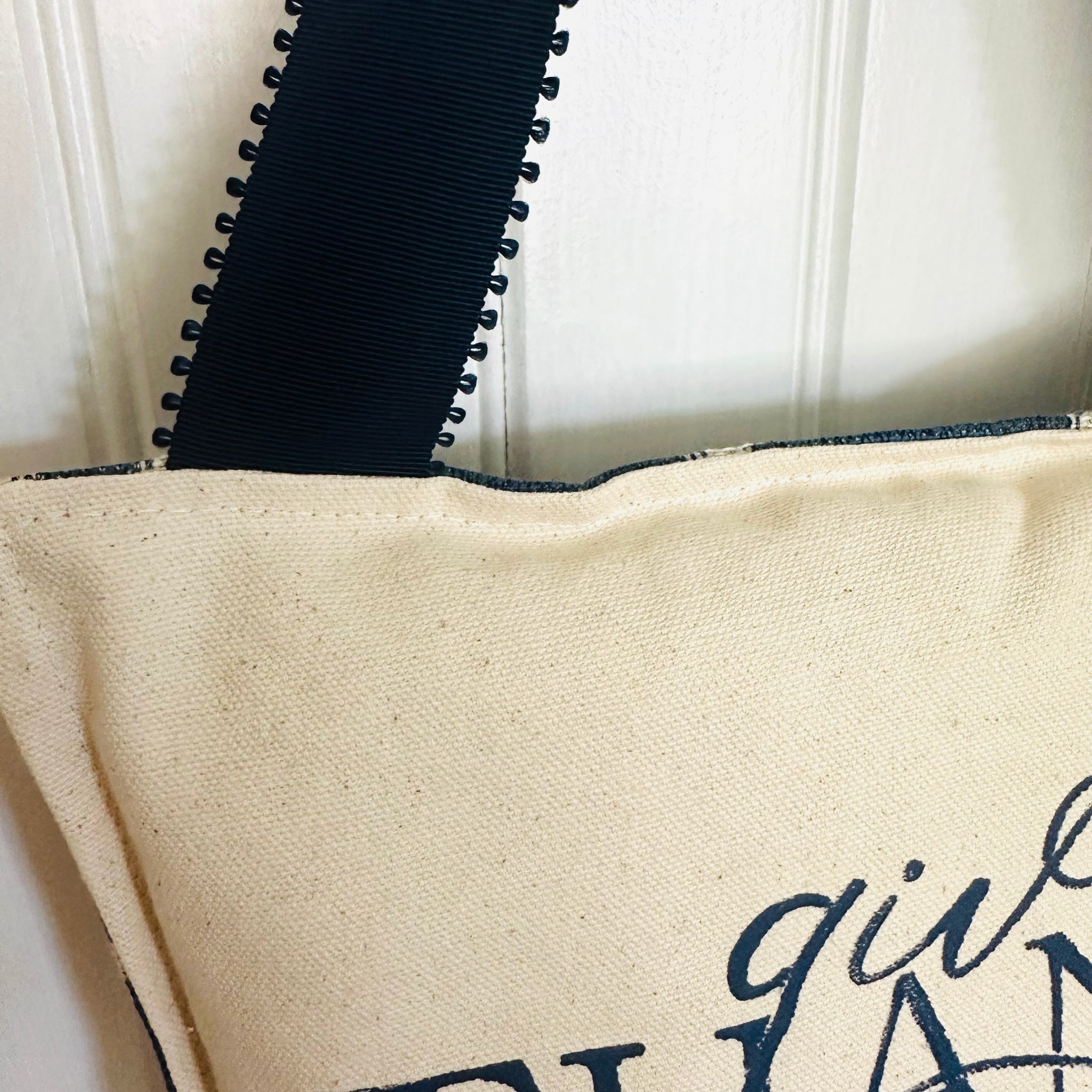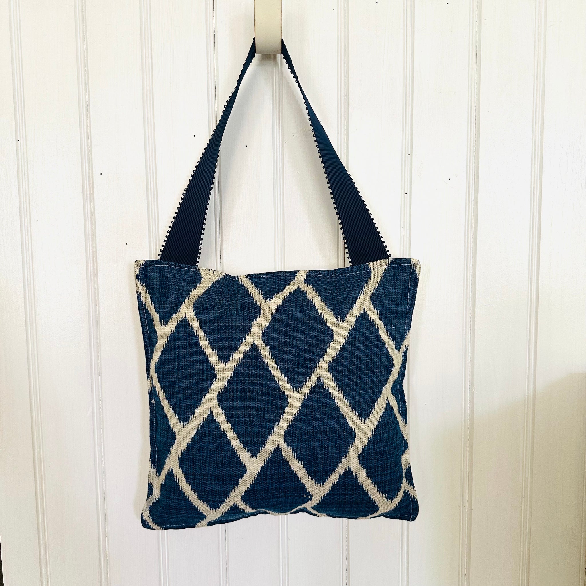 Wide, navy grosgrain ribbon hanger